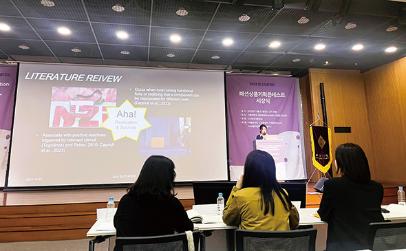 이 외에도 우리 연구실은 매 학기 국내외 의류·유통 분야 학회에 꾸준히 참가하고 있어요. 발표자가 아니더라도 연구실 전원이 학회에 참석해 최신 연구 동향을 배우고, 업계의 이슈를 접하며, 다른 연구실 및 분야 연구자들과 교류합니다. 또 글로벌 네트워크를 기반으로 다양한 국제 프로젝트에 참여하며 시야를 넓히고 있죠. 방학 중에는 미국, 홍콩 등지에서 저명한 연구자들을 초청해 직접 지도받을 기회도 제공합니다. 이는 학생들에게 학문적 성취뿐 아니라 글로벌 감각과 자신감을 길러주는 소중한 자산이 됩니다.