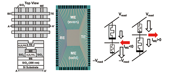 김형진 교수 연구팀은 지난 8월 반도체 소자의 일종인 멤리스터 기반의 PUF 기술을 개발해 나노과학 분야의 세계적 권위지인 『ACS 나노』(IF=18.1)에 발표했다. 본 연구는 기존 2차원 멤리스터 어레이 기반 PUF의 한계를 극복했다는 점에서 의미가 있다. 2차원 멤리스터 어레이 기반 PUF는 난수 공간이 제한적이고 보안성이 낮다는 한계가 있었다. 김형진 교수는 이를 극복하기 위해 멤리스터 어레이를 한 층 더 쌓은 3차원 크로스바 어레이라는 아이디어를 새롭게 제시했다. 특히 두 층의 전압 크기를 비교하기 위해서는 비교기 회로를 사용해야 하는데, 추가 회로 없이 3차원 적층형 메모리 어레이 내에서 바로 비교할 수 있는 방안을 고안해 우수성을 인정받았다.